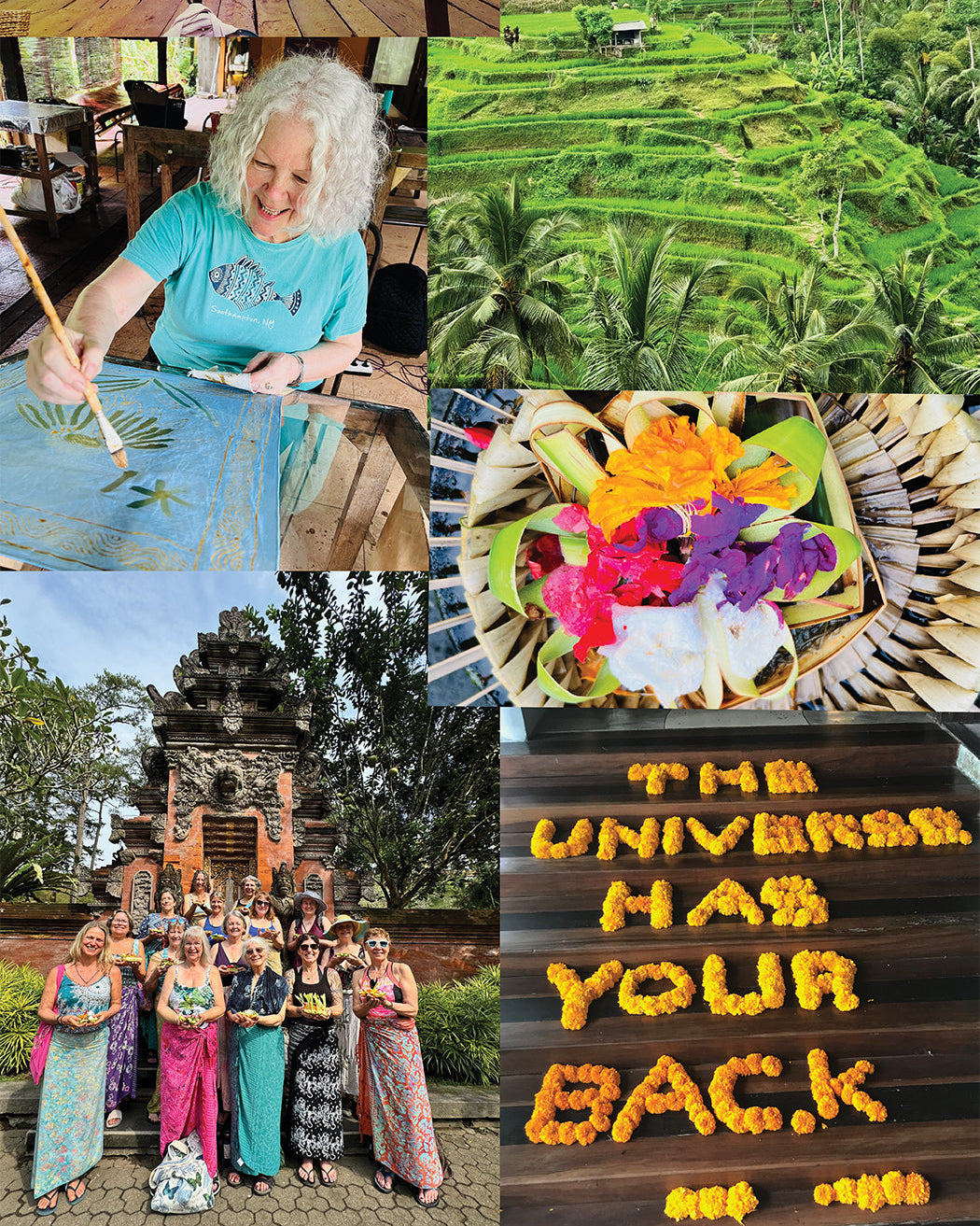 I loved being exposed to different types of art-making, and luxuriated in the time to sink into it. I really appreciated being taught some of the local customs so that we stepped lightly and respectfully in this beautiful place. Bali asks you to be gentler, and Kelly and Valori have crafted a program that is gentle to our artistic souls too. If you’re looking for a “fill my suitcase with cheap fabrics” tour, this isn’t the one for you. But if you’re looking for the “refill my soul” trip, look no further!"