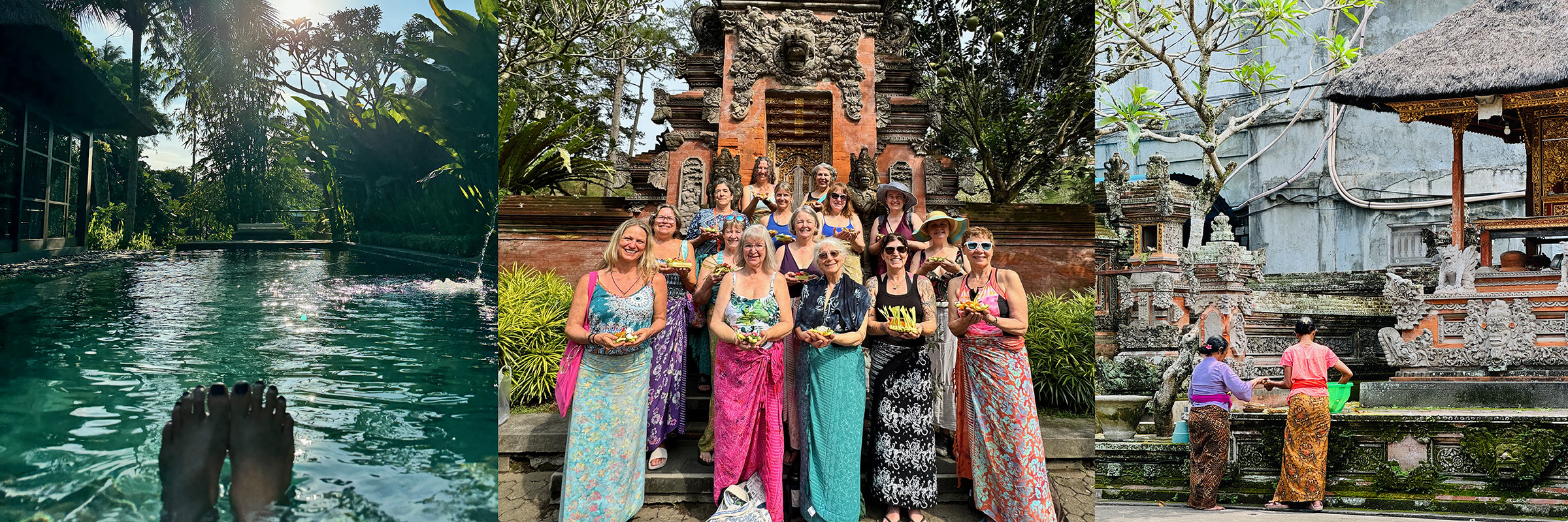"As I sit this morning reflecting on our Bali retreat, I am filled with joy and gratitude to you both for creating such an amazing experience. This retreat was exhilarating and the best thing I have ever done for myself. It was soul nourishing and I loved being surrounded with such brilliant, caring, and creative women in such a beautiful setting.You two have created magic and are so complimentary to one another. Thank you for sharing your passion and magic with all of us and for introducing us to the beautiful people and wonders of Bali.
