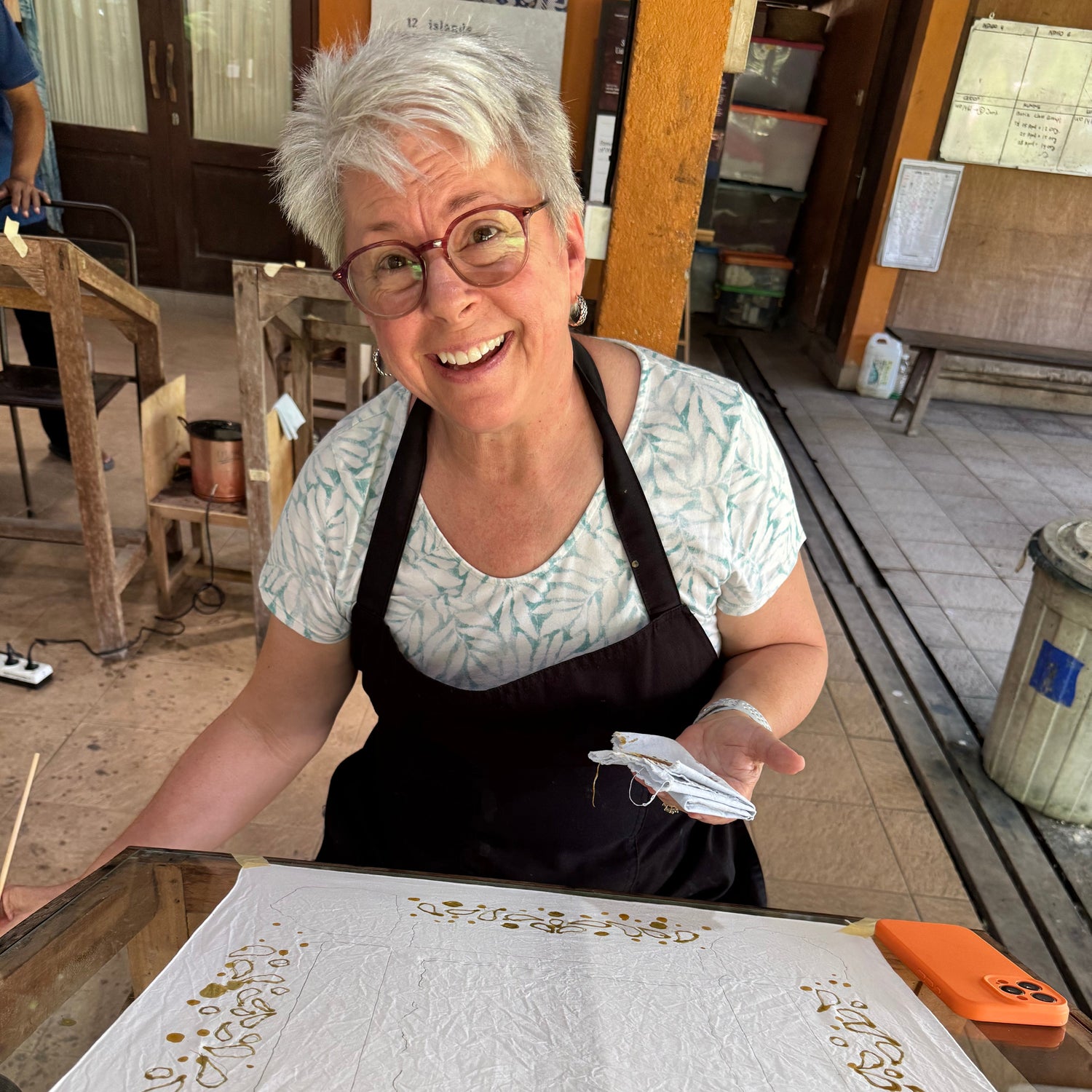 I loved being exposed to different types of art-making, and luxuriated in the time to sink into it. I really appreciated being taught some of the local customs so that we stepped lightly and respectfully in this beautiful place. Bali asks you to be gentler, and Kelly and Valori have crafted a program that is gentle to our artistic souls too. If you’re looking for a “fill my suitcase with cheap fabrics” tour, this isn’t the one for you. But if you’re looking for the “refill my soul” trip, look no further!"